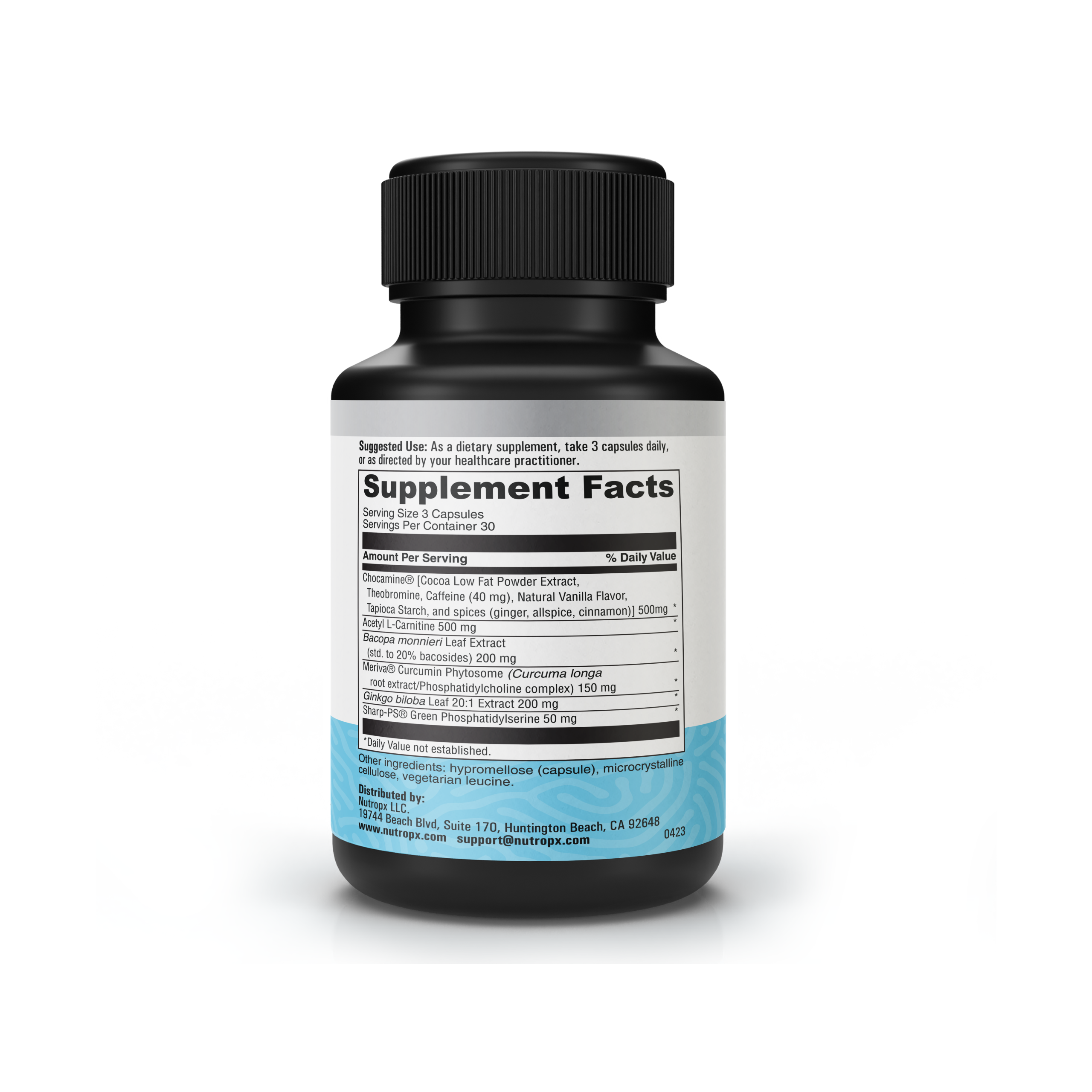 - Chocamine® Cocoa Extract: Rich in theobromine and other beneficial compounds, Chocamine® supports mood, mental energy, and sustained focus without the jitters of caffeine, while also providing antioxidant benefits.*
